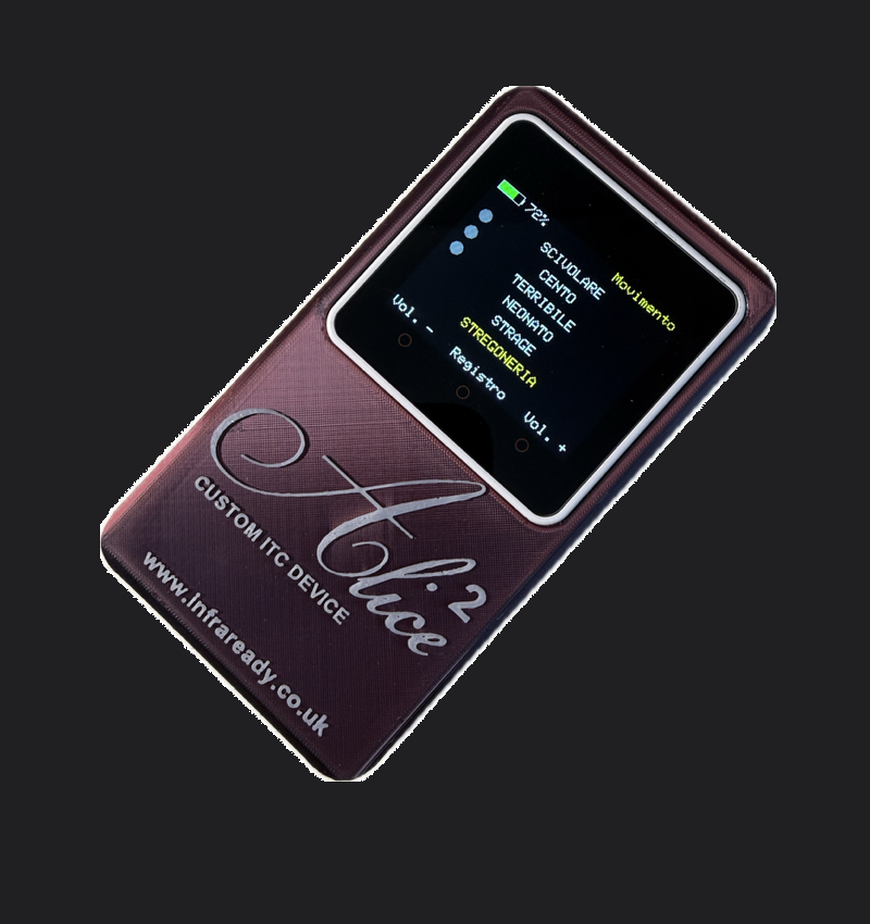 From the family of Alice Box Psychokinetic ITC Devices. The latest compact V2 version includes an extended word bank, rechargeable battery, six line display on screen plus the full word history can be viewed for the duration of the session.